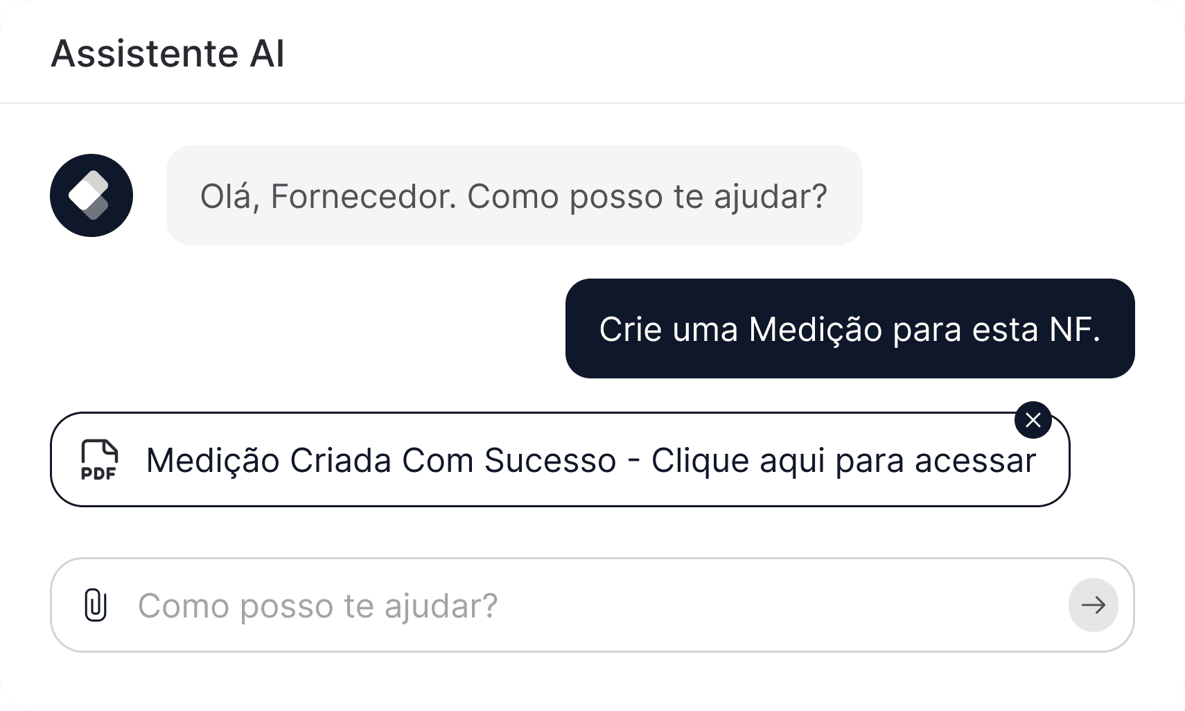 A Ferramenta de Medição permite com que somente o que esta contratado seja medido. Além disso, impostos retidos e retenções contratuais são realizados automaticamente. Após aprovada, a medição avisa o recebedor que ele pode emitir a sua NF
