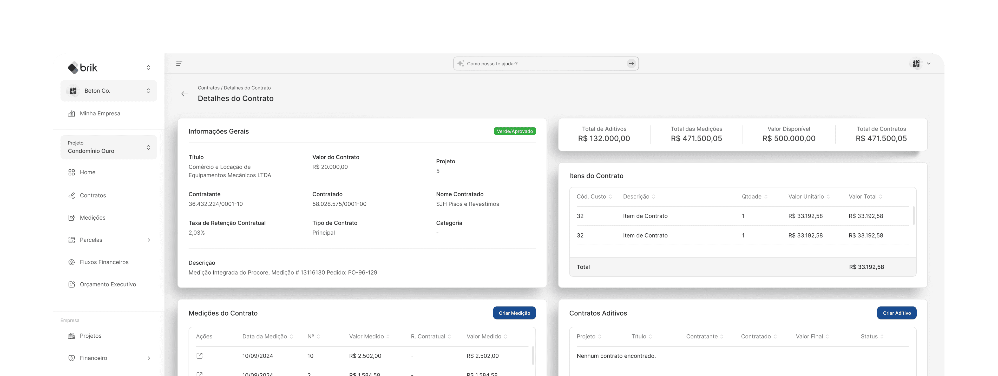A Ferramenta de Medição permite com que somente o que esta contratado seja medido. Além disso, impostos retidos e retenções contratuais são realizados automaticamente.